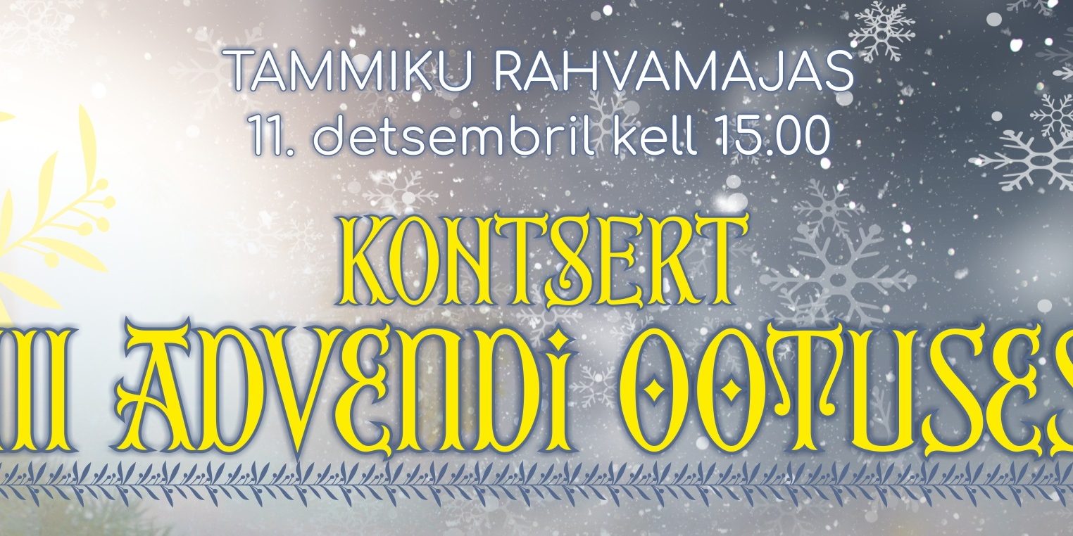 Kutsume teid 11. detsembril Tammiku Rahvamajas toimuvale tasuta kontserdile “III advendi ootuses”, kus esinevad Liana Zeigro ja Ragnar Häide, Tammiku Segaansambel ja naisrühm Tammiku.