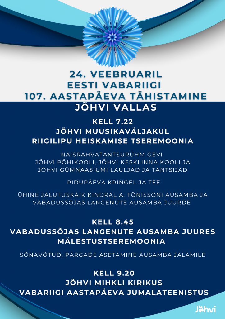 24. veebruaril kutsume kõiki Jõhvi valda osa saama pidulikest sündmustest, mis täidavad hommikuse päeva ülevas ja meeleolukas rahvustundes.