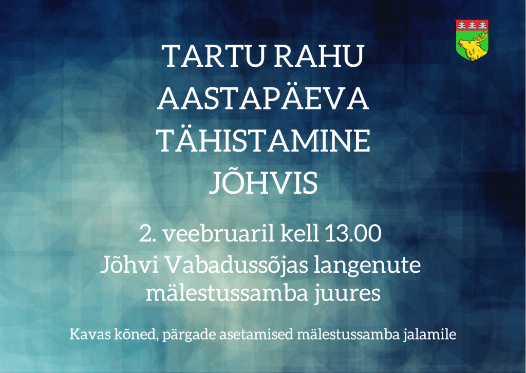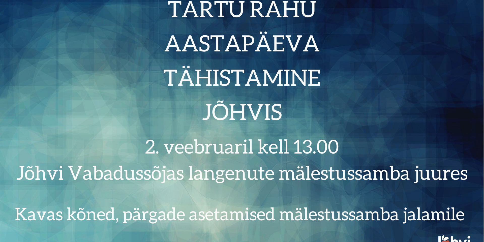 Tartu rahu aastapäeva tähistamine toimub 2. veebruaril kell 13.00 Jõhvi Vabadussõjas langenute mälestussamba juures.