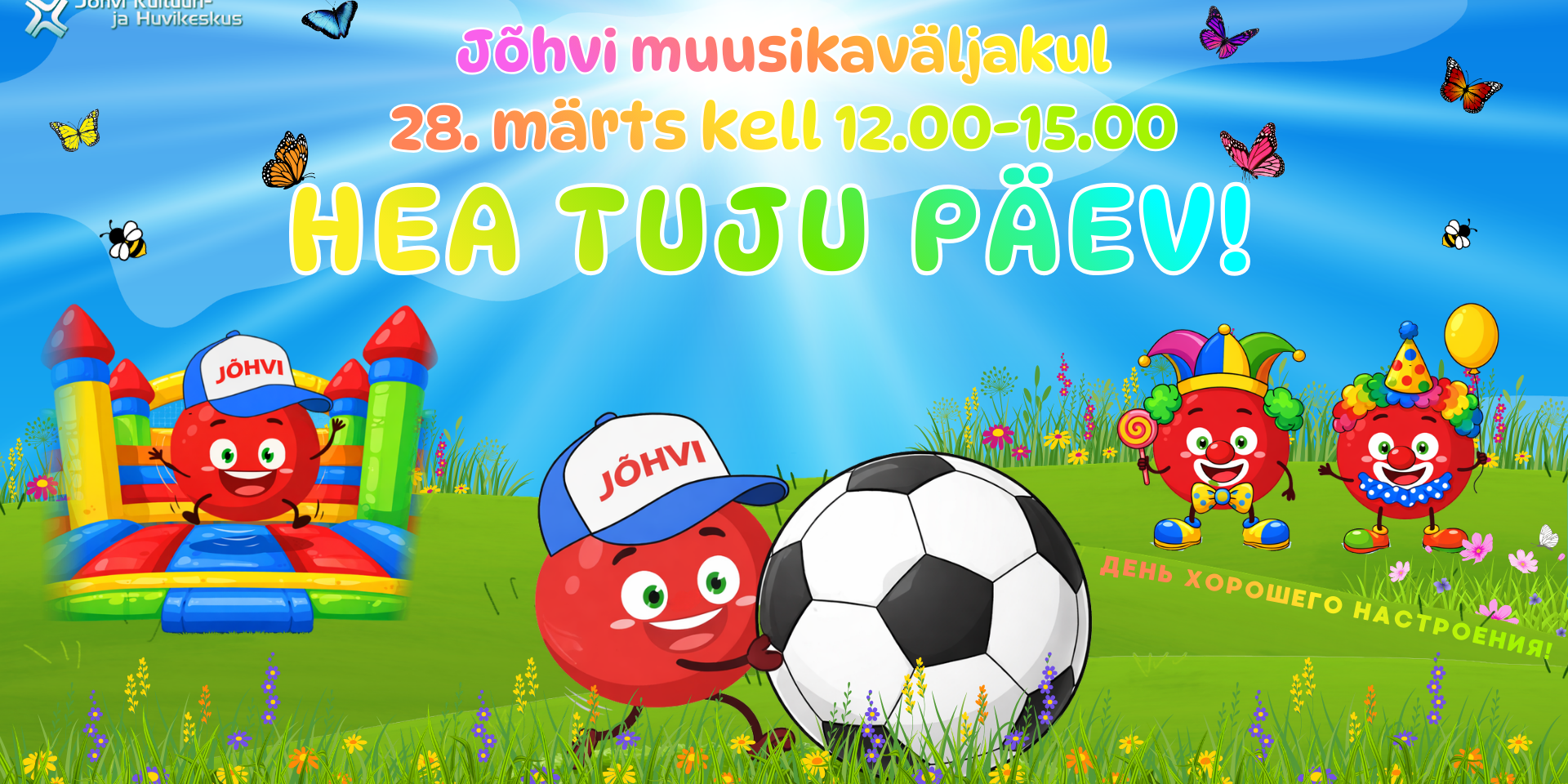 Hea tuju päev väikestele ja suurtele! Kingime üksteisele naeratusi, rõõmu ja kevadist meeleolu! 12:00 – muusika, tantsud, mängud, atraktsioonid, võistlused, mini-loomaaed, laat, üllatused, kuumad joogid ja toit12:30 – Fun Football 13:30 – Jõumeeste võistlus (spordiklubi “Edu”) 14:00 – Mironoff Show „Tsirkus kohvris“ День хорошего настроения для маленьких и взрослых! Подарим друг другу улыбки, радость и море веселья! 12:00 – музыка, танцы,