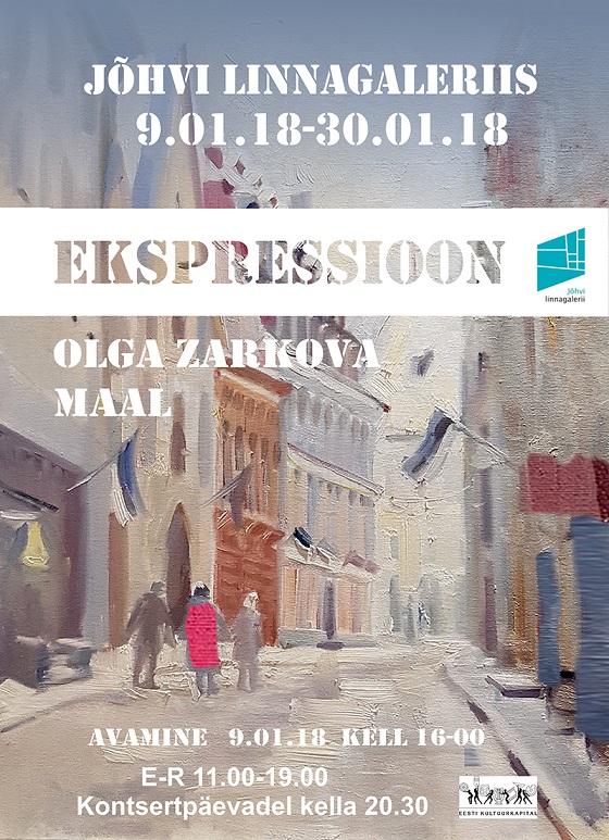 Jõhvi linnagaleriis saab vaadata 9.jaanuarist Kohtla-Järve Kunstnike Ühenduse ja Vene Kunstnike Ühenduse tegevkunstniku Olga Žarkova maalide näitust „Ekspressioon“, mille kunstnik on pühendanud Eesti Vabariigi 100. sünnipäevaks.
