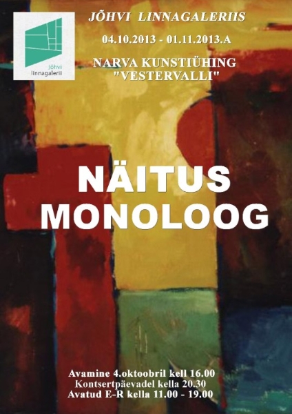 Narva Kunstiühingu “Vestervalli” kunstnikud avasid Jõhvi linnagaleriis 4.oktoobril näituse “Monoloog”.